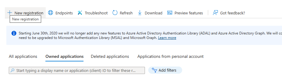 In the Azure Portal, navigate to Entra ID → Manage → App Registrations , and create a new app registration.