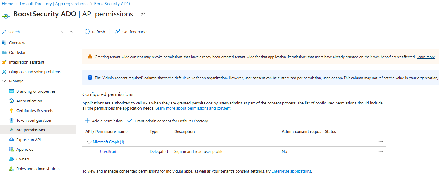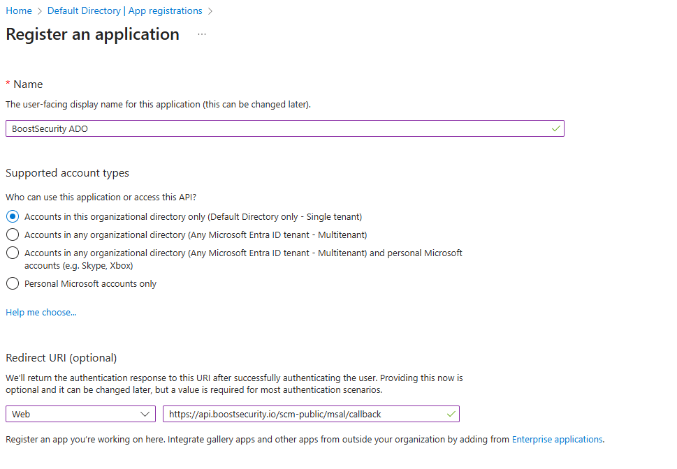 Configuring Entra ID and Azure DevOps Integration with BoostSecurity¶